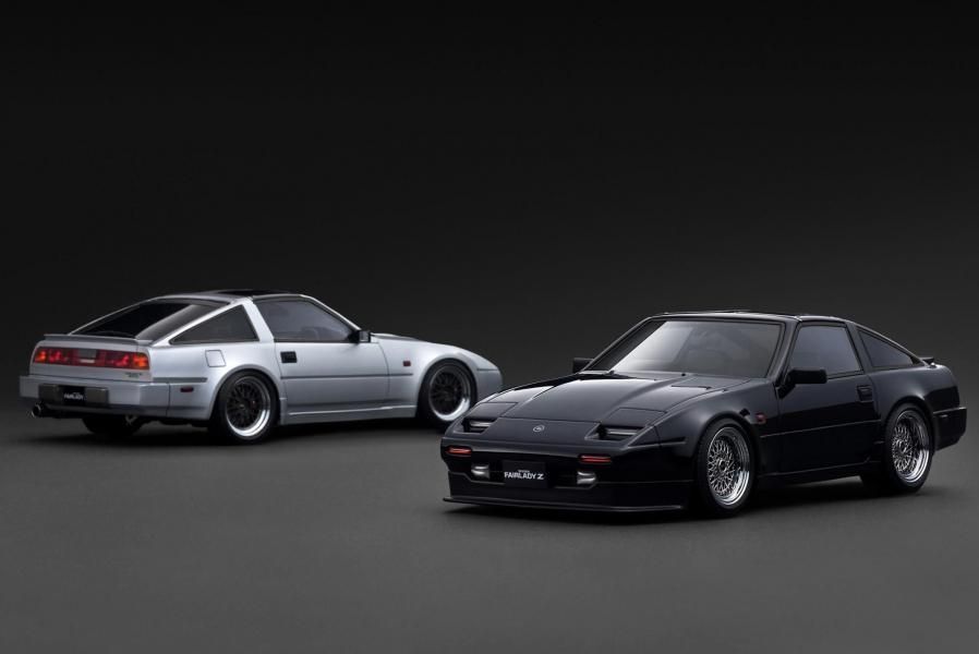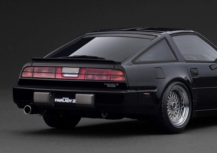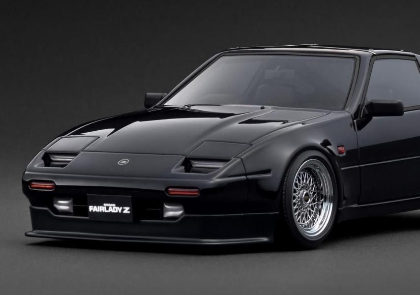 「Fairlady Z 300ZR (Z31) 」を1/18スケールレジンモデルで再現。ボディカラー:ブラック。BBS RSタイプ17インチホイール(ポリッシュ&シルバー)にローダウン仕様。社外フロントリップスポイラー、リヤスポイラー、大型ブレーキキャリパー、1本出しマフラー、純正シート、ナルディタイプステアリングを装着。 ※画像は試作品です。