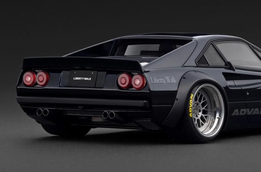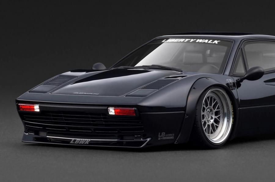 リバティウォークのデモカーをベースにした「LB-WORKS 308」を1/18スケール レジンモデル素材でモデル化しました。ボディカラー:ブラック。LD97 LD-12タイプ18インチホイール(ポリッシュ&シルバー)に専用ボディキット(フロントバンパー、前後オーバーフェンダー、リヤウィング)、ビタローニタイプサイドミラー、レッドキャリパー、ボディの各所に専用デカール、LB-worksオリジナルステアリング、ノーマルシート、4本出しマフラーを装着。 ※画像は試作品です。