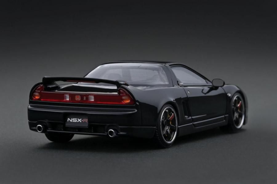 NSX-R(NA2)をベースにしたカスタム仕様を1/43スケールレジンモデルで再現。TE37タイプ18インチホイール(ポリッシュ&ガンメタリック)にローダウン仕様。フロントリップスポイラー、リヤスポイラー、リヤディフューザー、左右出し大径マフラー、バケットシート、モモタイプステアリング装着。