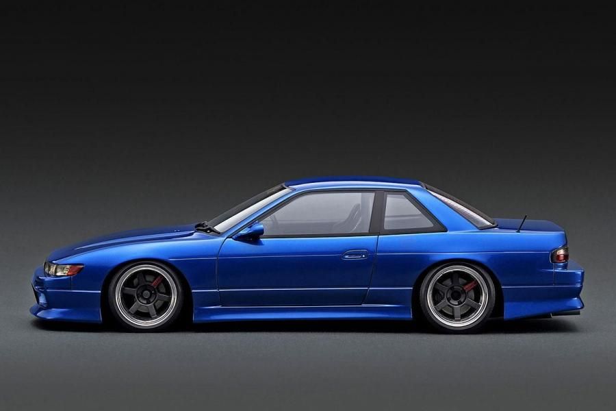 「VERTEX S13 Silvia 」を1/18スケールレジンモデルで再現。TE37タイプ 17ンチホイール(ポリッシュ&ガンメタリック)にローダウン仕様。VERTEX製エアロパーツ(フロントバンパー、サイドステップ、リヤバンパー)を装着。フロントウィンドウ上部とリヤウィンドウ下部「VERTEX」ロゴ、大径シングルマフラー(チタンカラー)、VERETX製バケットシート、VERTEX製ステアリング4点式ロールバーを装着。 ※画像は試作品です。