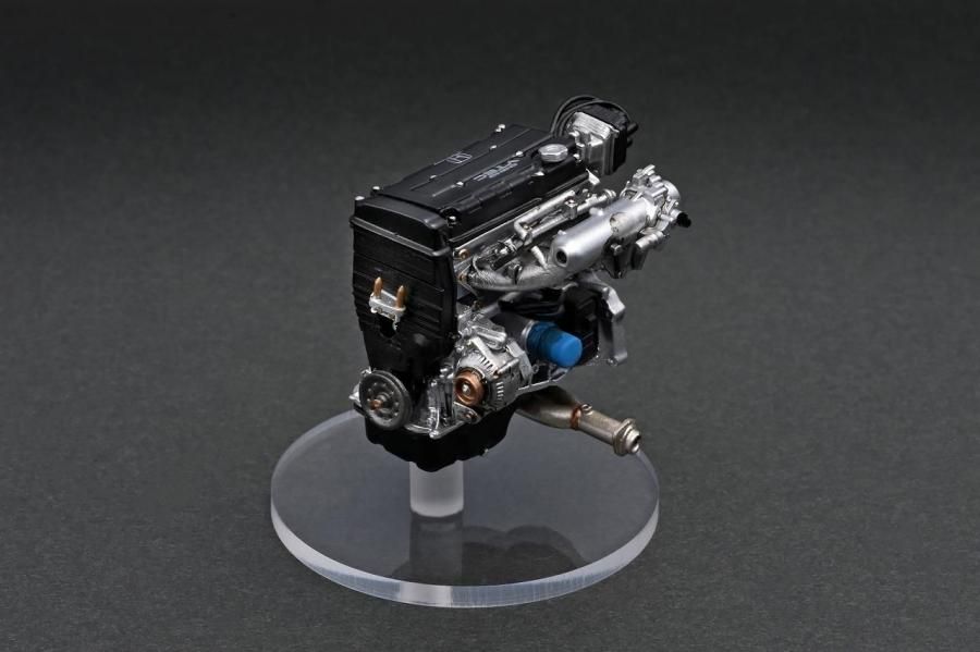 奈良県に所在するホンダ車をメインにしたカスタムプロショップ「ゼロファイター」のレ―ス車両、「CIVIC (EG6) ZERO FIGHTER」を1/18スケールレジン素材でモデル化しました。ボディカラー:オレンジ。ゼロファイター53号車は鈴鹿やもてぎサーキットのクラブマンレースでシリーズチャンピオンに輝くなど数々の輝かしい戦歴を残している有名なデモカーです。RPF1タイプ15インチホイール(シルバー)を装着。純正フロントリップスポイラー、純正リヤスポイラー、ストレートマフラー、リヤ牽引フック、ボンネット、リヤフードのキャッチピン、内装は左右バケットシート、6点シートベルト、ロールケージ、ZERO FIGHTERステアリング、ZERO FIGHTERウィンドウネット等、N1規定に沿ったレーシングユースの細部再現が見所満載です。製品には「VTEC(B16A)エンジン」を付属。実機の3Dスキャニング取材から直列4気筒DOHC16バルブエンジンを詳細に再現しました。ブラックのヘッドカバーに「HONDA VTEC」のロゴマークが誇らしげな名機をお楽しみください。